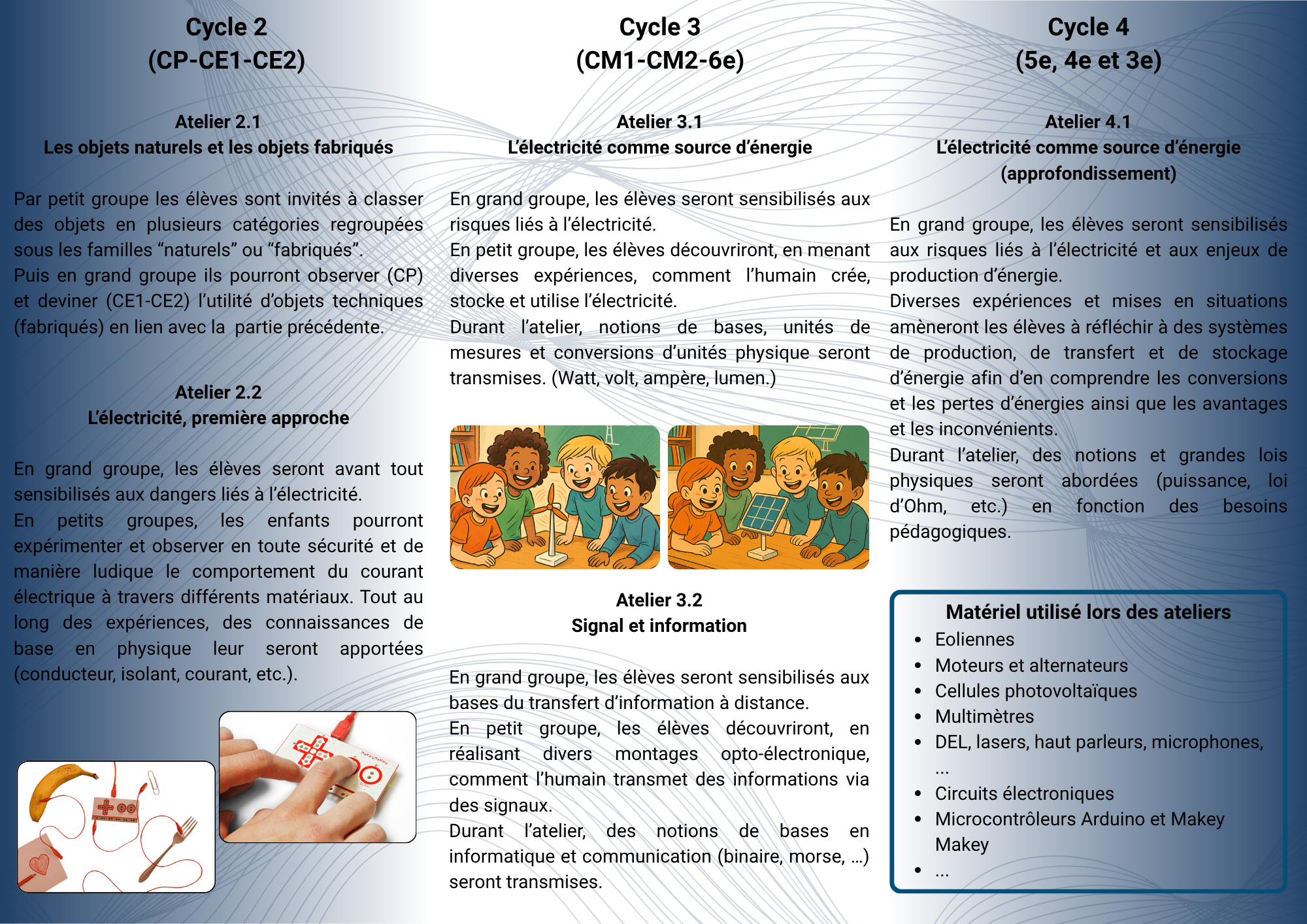 Odyssée scientifique et technique des énergies, découverte et utilisation progressive de l’électricité, transition vers les énergies renouvelables ou encore initiation aux éco-gestes : du primaire à l’enseignement supérieur, le Pôle des Énergies vous propose différents niveaux de lecture.